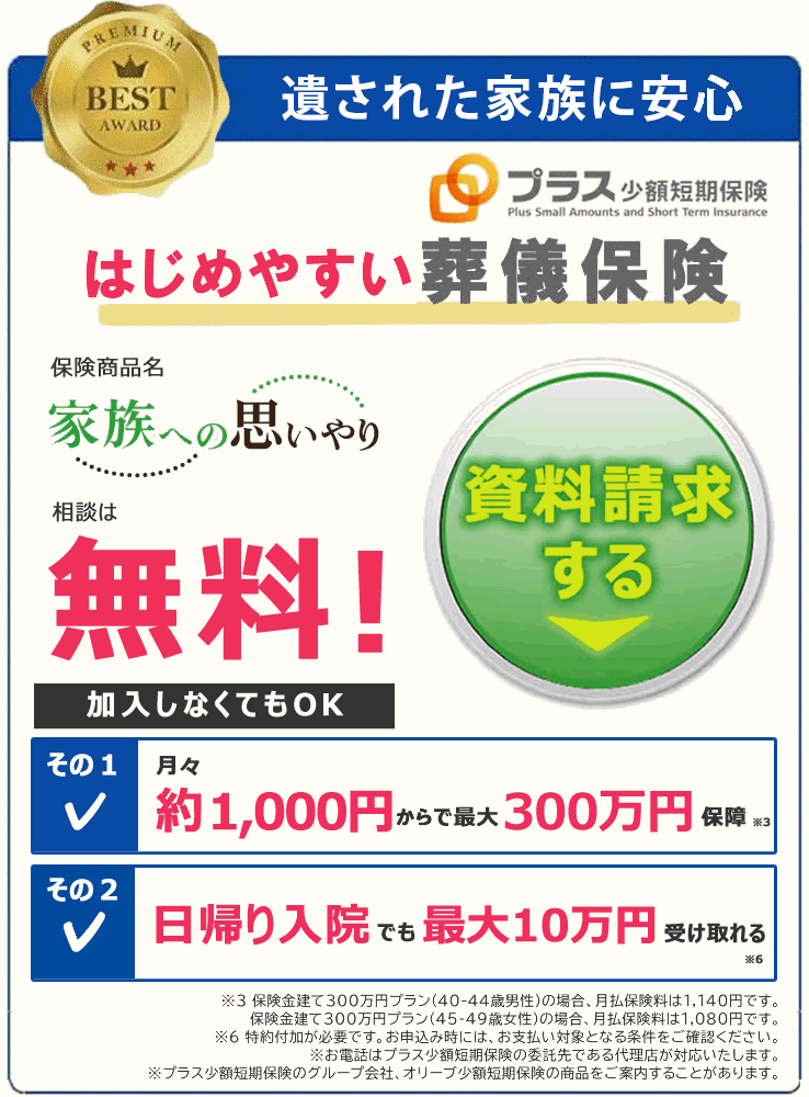 掲載商品会社:プラス少額短期保険株式会社
